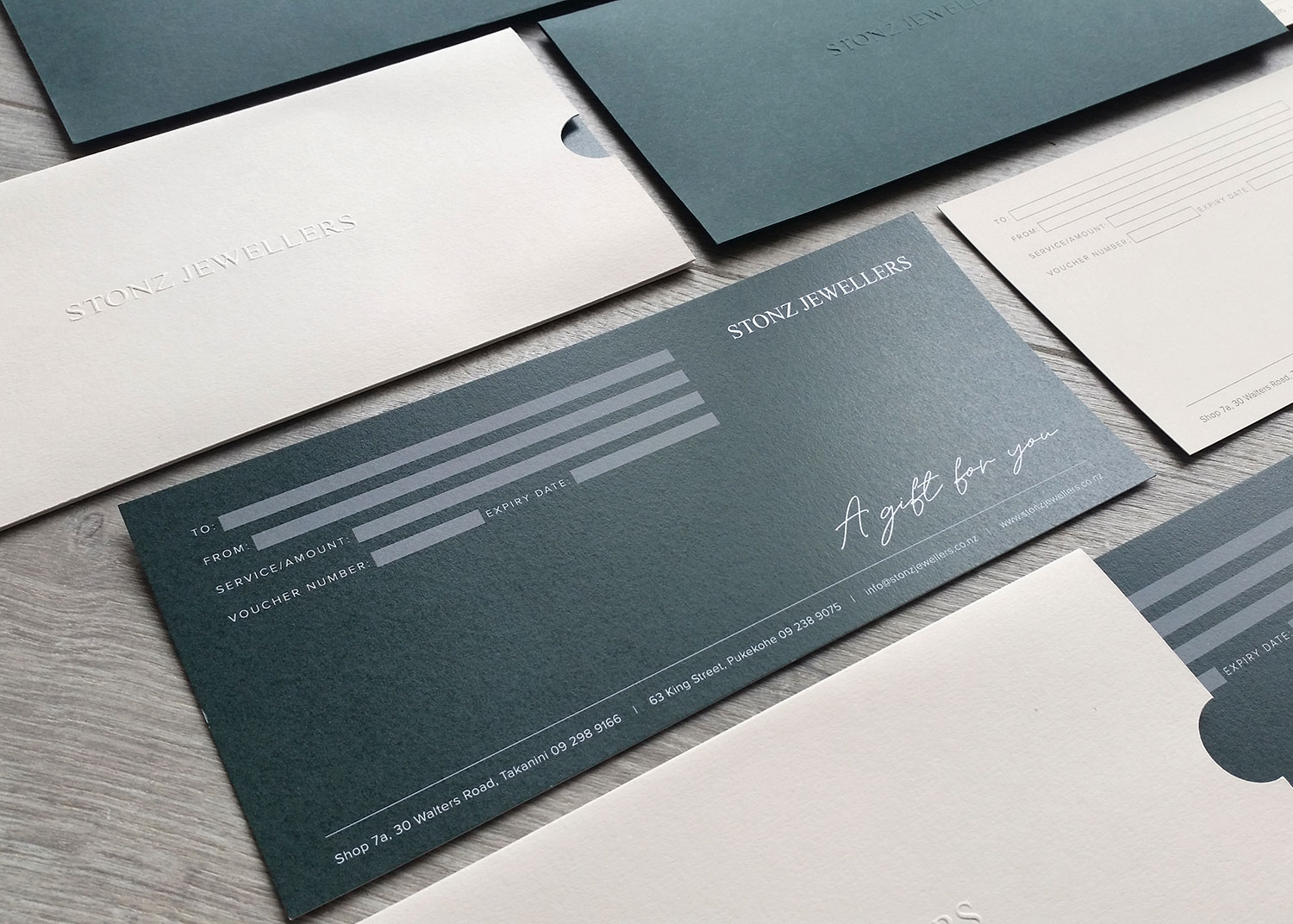A beautifully presented gift voucher is more than just a piece of paper – it’s part of the gift itself. Luxe finishes, quality paper stocks, and well executed design all adds to the excitement and perceived value of what’s inside. Your print collateral should help your customers give a gift that creates a lasting impression for the recipient. We have lots of options for custom shapes and sizes, special print finishes like foil and embossing, metallic toners, and more. We also have a huge range of paper stocks available, and we deliver nationwide across New Zealand, and overseas too.